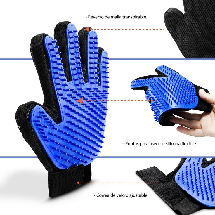 * Excelente guante con puntas de silicona. Sirve para masajear, peinar y desenredar el pelo de tu mascota.